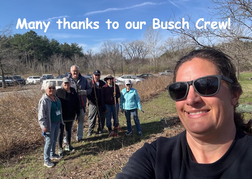 Our next work day at Busch is on Thursday, November 9 at 10 a.m. . On that date, we hope to plant 10 native trees and shrubs in the long “prairie” area that separates the employee parking area from the public areas. Join us if you can! Let Mary Meinhardt ([email protected] ) know if